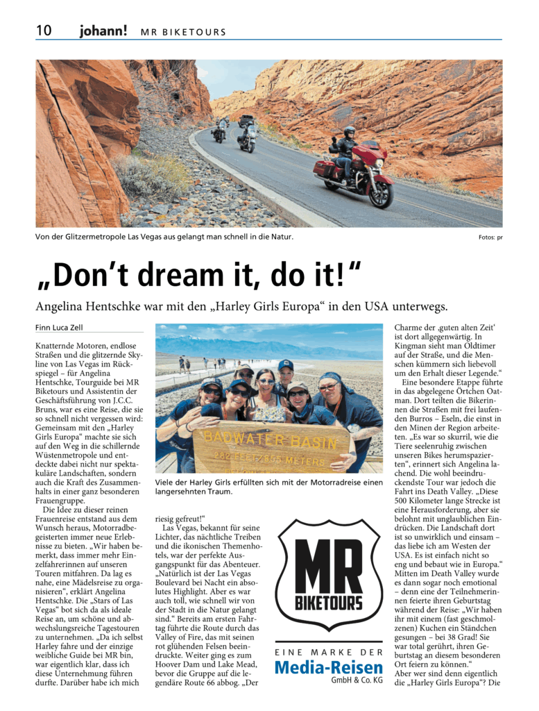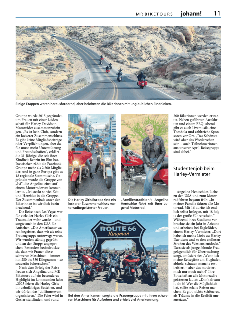 Harley Girls Europa, eine Gruppe die nur aus Frauen besteht die Harley-Davidson fahren, die alle mit Herzblut und voller Leidenschaft dabei sind. Die Gruppe wurde Anfang 2015 gegründet, ich war von Anfang an dabei. Es war der Gedanke dahinter um ein paar Mädels zusammen zu bringen um am Wochenende mit diesen zu fahren, es kann doch nicht nur eine Männer Domäne sein!? Ich habe dann die Gruppe im Sommer 2015 mit 50 Mitglieder übernommen und bin Administrator geworden und habe mit viel Herzblut und Eifer die Gruppe aufgebaut so dass daraus eine Gemeinschaft geworden ist die Europaweit gewachsen ist. Es war nicht immer leicht, zumal man immer sehen muss eine Gruppe im Gleichgewicht zu halten, gerade am Anfang aber nun nach über 10 Jahren ist die Gruppe gut eingefahren.